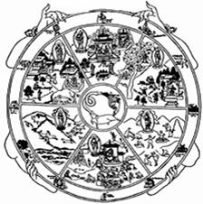 The Buddhist wheel of life Reincarnation is a component of some religions (Hinduism, Buddhism) as well as of many variations of contemporary ►esoterics; it is often accompanied by the notion that one's own way of life (Karma) will affect one's next rebirth. Buddhism defines an individual's state of salvation, Nirvana, in terms of her exit from the cycle of reincarnation. Only by overcoming all material desires, and indeed all egoism, can an individual gradually reach this state; then and only then does her soul enter the Great Nothingness and gain release from the cycle of life. It is not uncommon for followers of esoteric views to recollect their earlier (and usually more interesting) lives with the help of meditation, hypnosis, or the consumption of certain substances. Despite this, contemporary reincarnation theory does experience some difficulty when it comes to reconciling the view that a fixed or dwindling number of souls is and will be reborn over and over eternally with the population increase on Earth and with the planet's limited life span. Regarding the latter problem, reincarnation believers can take comfort in the thought that reincarnation can also take place on other planets, in ►parallel worlds, or in other dimensions of existence. And regarding the former, some more recent theories hold that one soul can be incarnated in several bodies or vice versa, thus rendering population changes in either direction irrelevant. To make sure your reincarnation goes according to plan, you can even purchase a reincarnation certificate on the Internet.