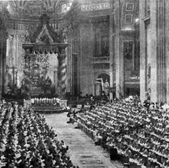 According to the conclusion of the First Vatican Council of July 18, 1870 under Pope Pius IX, a pope is infallible whenever he states a formal (ex cathedra) doctrine of faith. The wording of the statement is as follows: "Faithfully adhering, therefore, to the tradition inherited from the beginning of the Christian Faith, we, with the approbation of the sacred council, for the glory of God our Savior, for the exaltation of the Catholic religion, and the salvation of Christian peoples, teach and define, as a Divinely revealed dogma, that the Roman pontiff, when he speaks ex cathedra, that is, when he, in the exercise of his office as shepherd and teacher of all Christians, by virtue of his supreme Apostolic authority, decides that a doctrine concerning faith or morals is to be held by the entire Church he possesses, in consequence of the Divine aid promised him in St. Peter, that infallibility with which the Divine Savior wished to have His Church furnished for the definition of doctrine concerning faith or morals; and that such definitions of the Roman pontiff are of themselves, and not in consequence of the Church's consent, irreformable."* Pius IX showed already signs of mental confusion at the time of the council, and attributed himself not only infallibility but also miraculous healing forces. Still, since this statement on papal infallibility is itself conveyed as an infallible doctrine, no non-pope was allowed to contradict it. Indeed, some bishops who rejected the Council's decree were immediately excommunicated. The question of what would happen if a pope ex cathedra should declare the infallible doctrines of an earlier pope to be false was not discussed by the Council. * Council decree Pastor aeternus, 07/18/1870. This English translation from"Vatican Council" in The Catholic Encyclopedia (online).